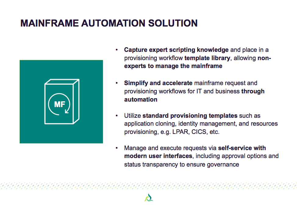 In their words, they’d like to transition the level of knowledge and effort of “older” mainframe admins into something simple and familiar that any Generation Y, 25 years old, can operate easily.